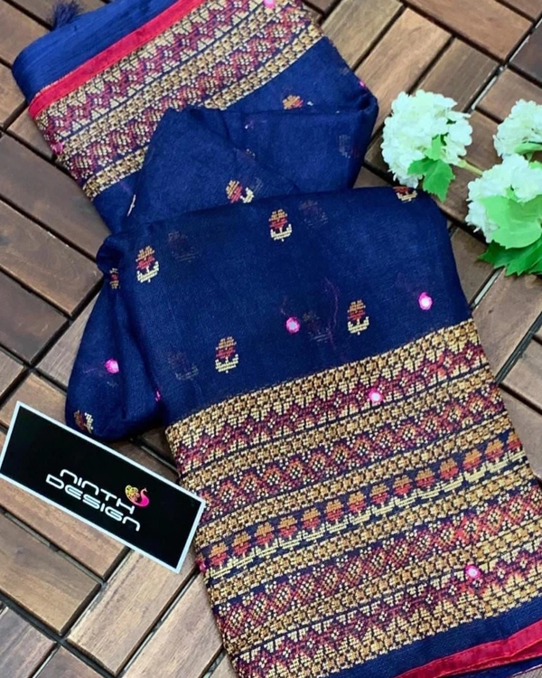 [ beautiful HD print and foil mirror work and contrast lace border and attractive latkan on pallu ]