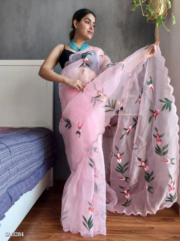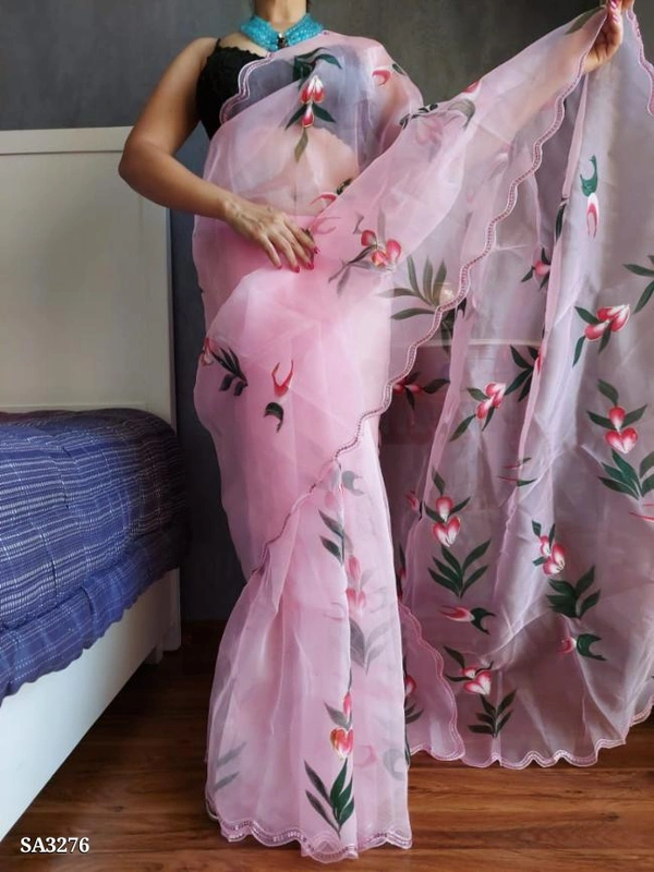 \n*Suman Soft & pure organza silk saree with beautiful handbrush prints nd foil outing nd fancy sequence aarco...